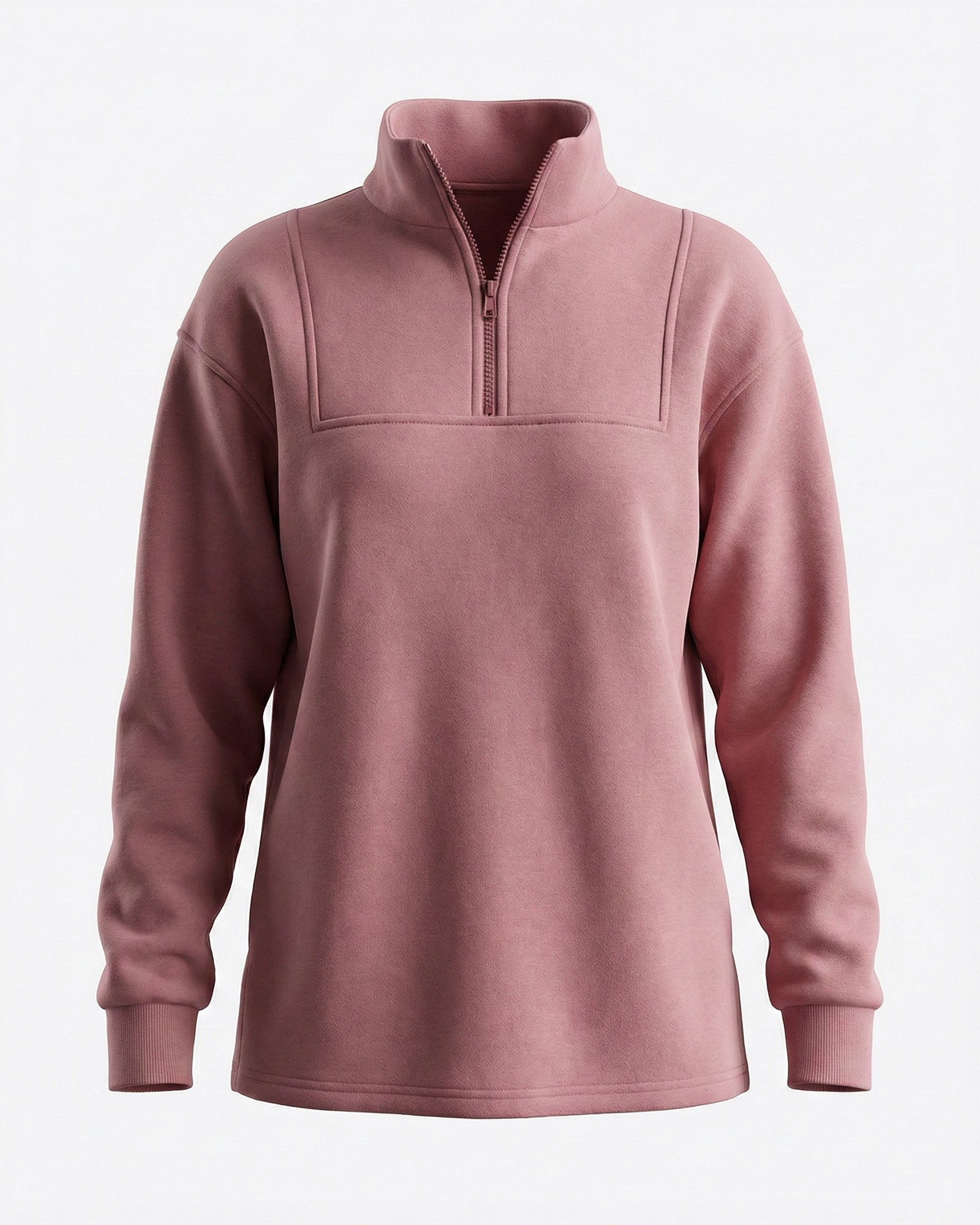 Однотонний світшот з блискавкою та боковими розрізами внизу. Модель з довгими рукавами, опущеними плечовими швами та широкими манжетами. Всередині...