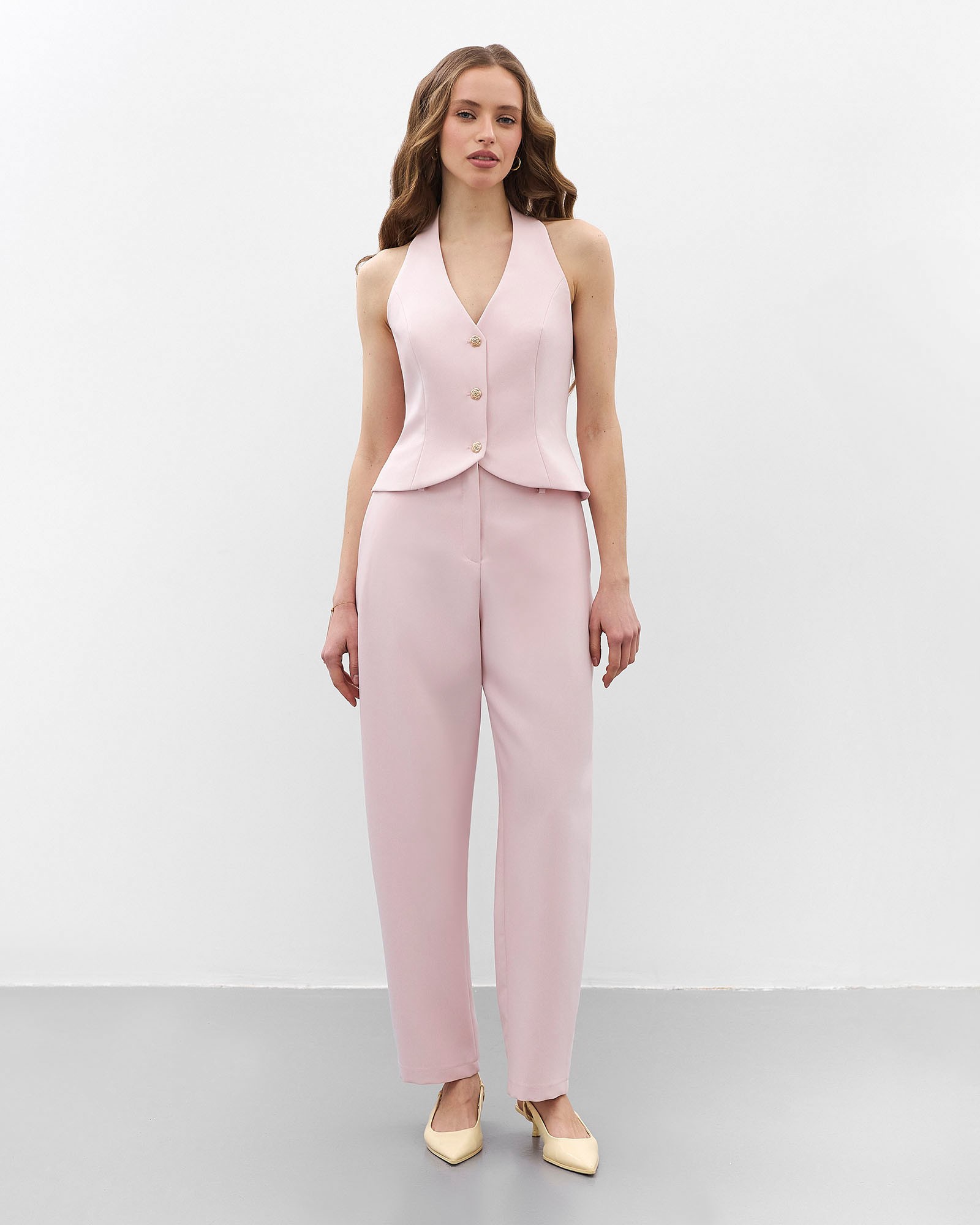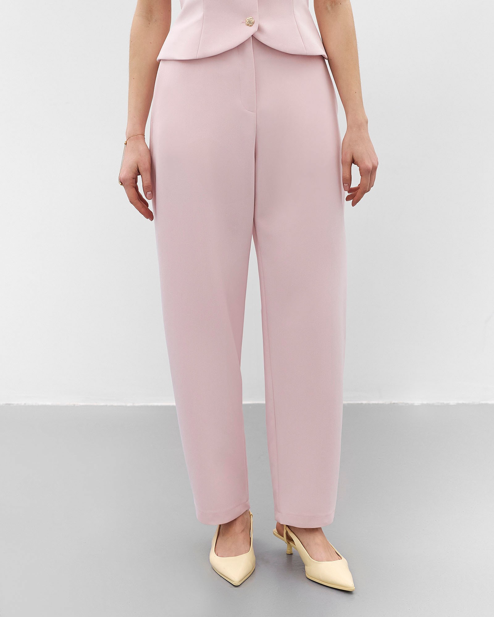 Передзамовлення. Очікувана дата постачання на склад 17.03.2026р. Однотонна базова модель штанів з високою посадкою та о-подібним силуетом,...