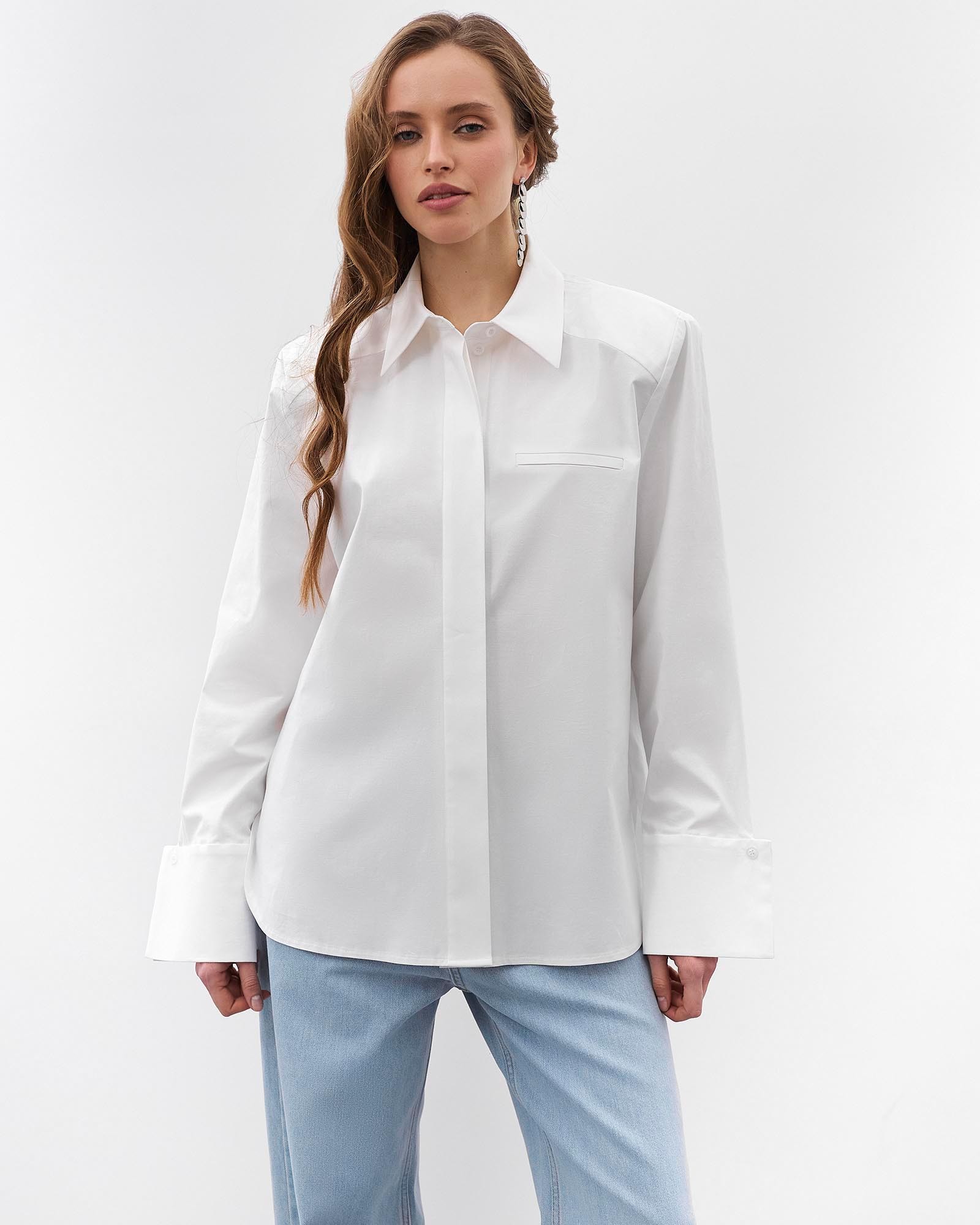 Передзамовлення.  Очікувана дата постачання на склад 30.03.2026р. Однотонна сорочка вільного крою з імітацією нагрудої кишені та...