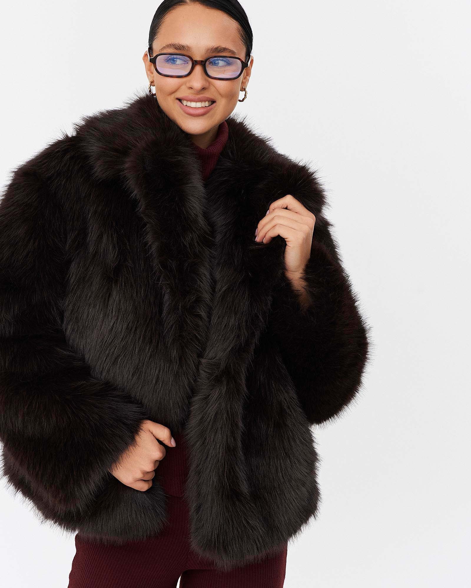 Передзамовлення. Очікувана дата поставки 01.12.2025р. Однотонна шуба прямого крою з відкладним широким коміром, боковими кишенями та довгими...