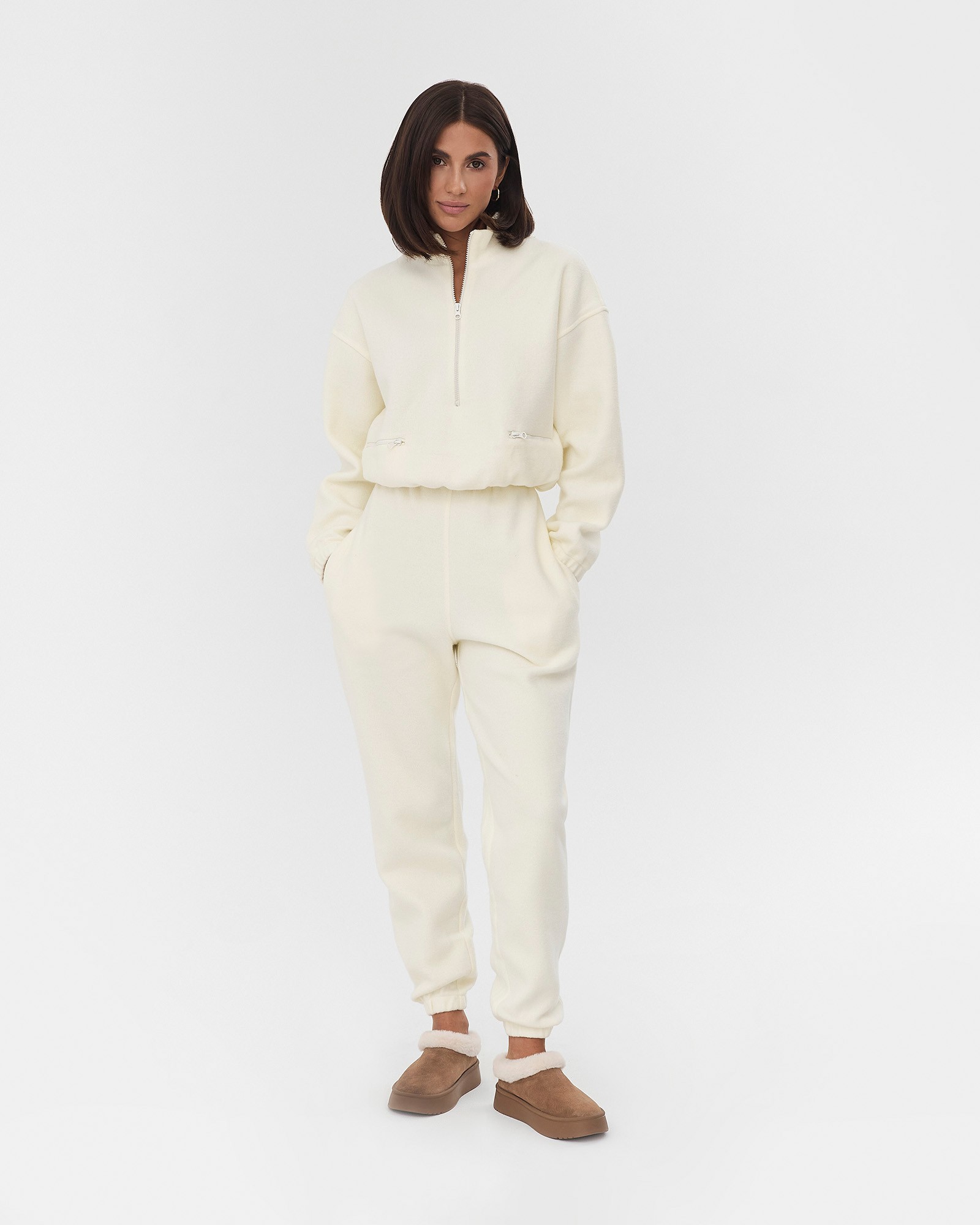 Однотонні штани-джогери з високою посадкою, еластичним поясом, боковими кишенями та кишенею на блискавці ззаду. На моделі розмір S.