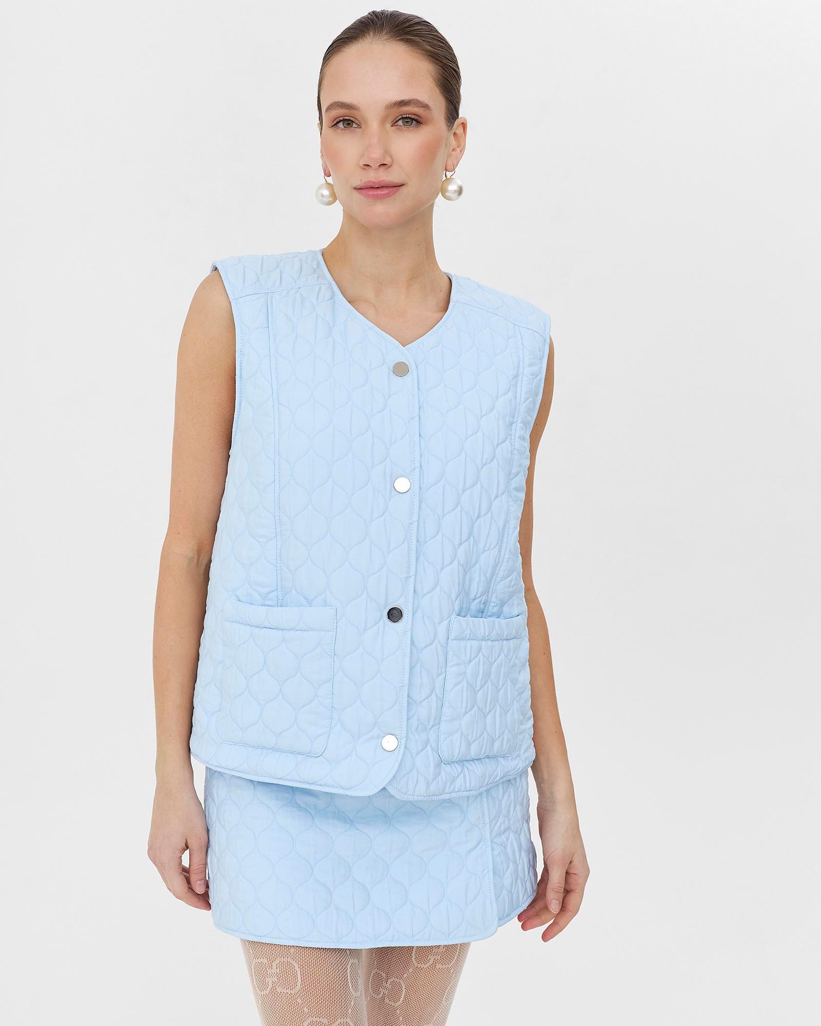 Швидкий перегляд Жилет Quilted з кишенями Ціна 2 199,00 грн Однотонний стьобаний жилет з круглою горловиною, накладними кишенями спереду та скругленим низом. Застібається на кнопки спереду. На моделі... Видали з уподобаного Додати в уподобане Додати в уподобане Додати до порівняння