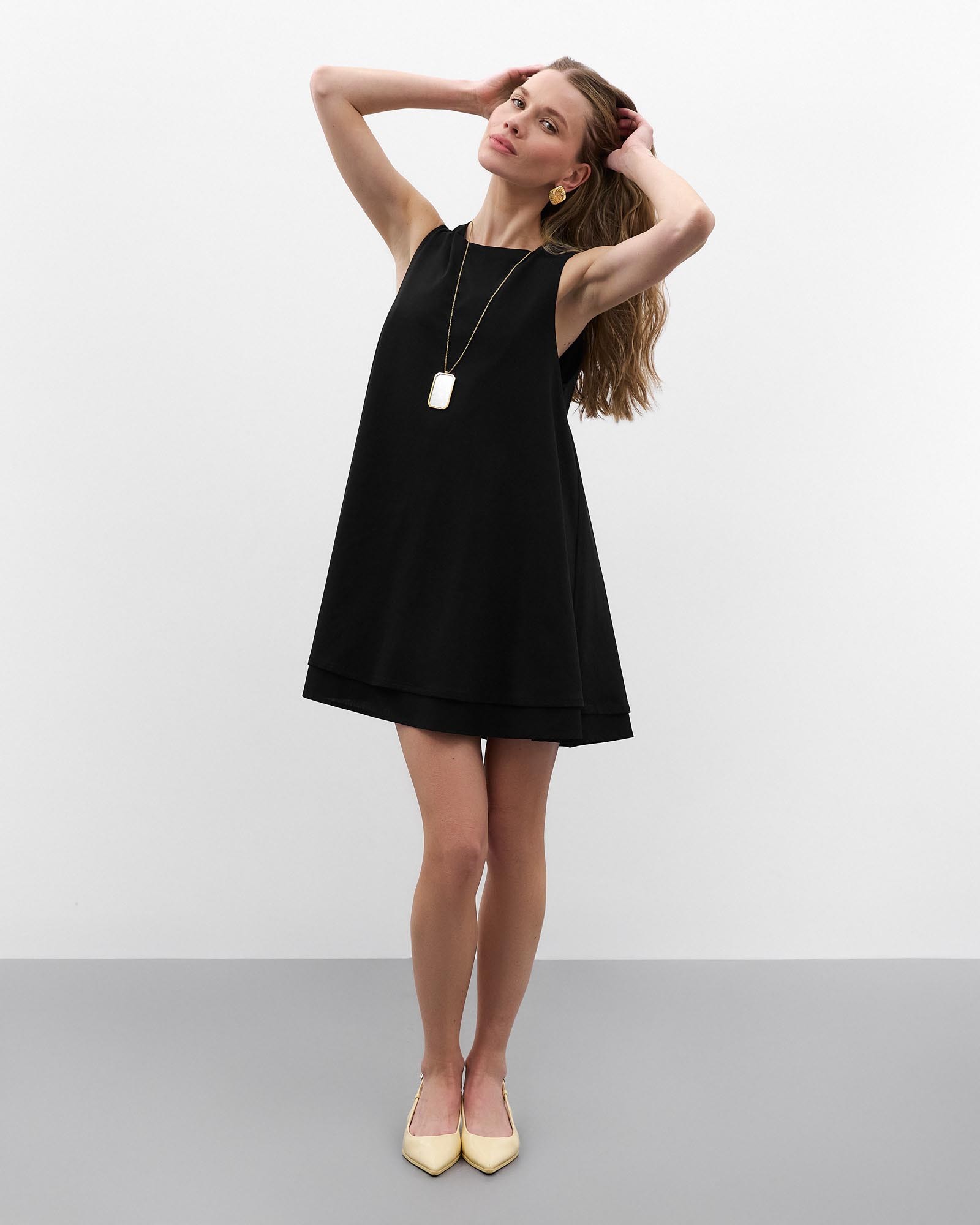 Однотонна сукня вільного крою довжини міні. Модель з круглою горловиною, без рукавів та застібкою на приховану блискавку ззаду.  На моделі...