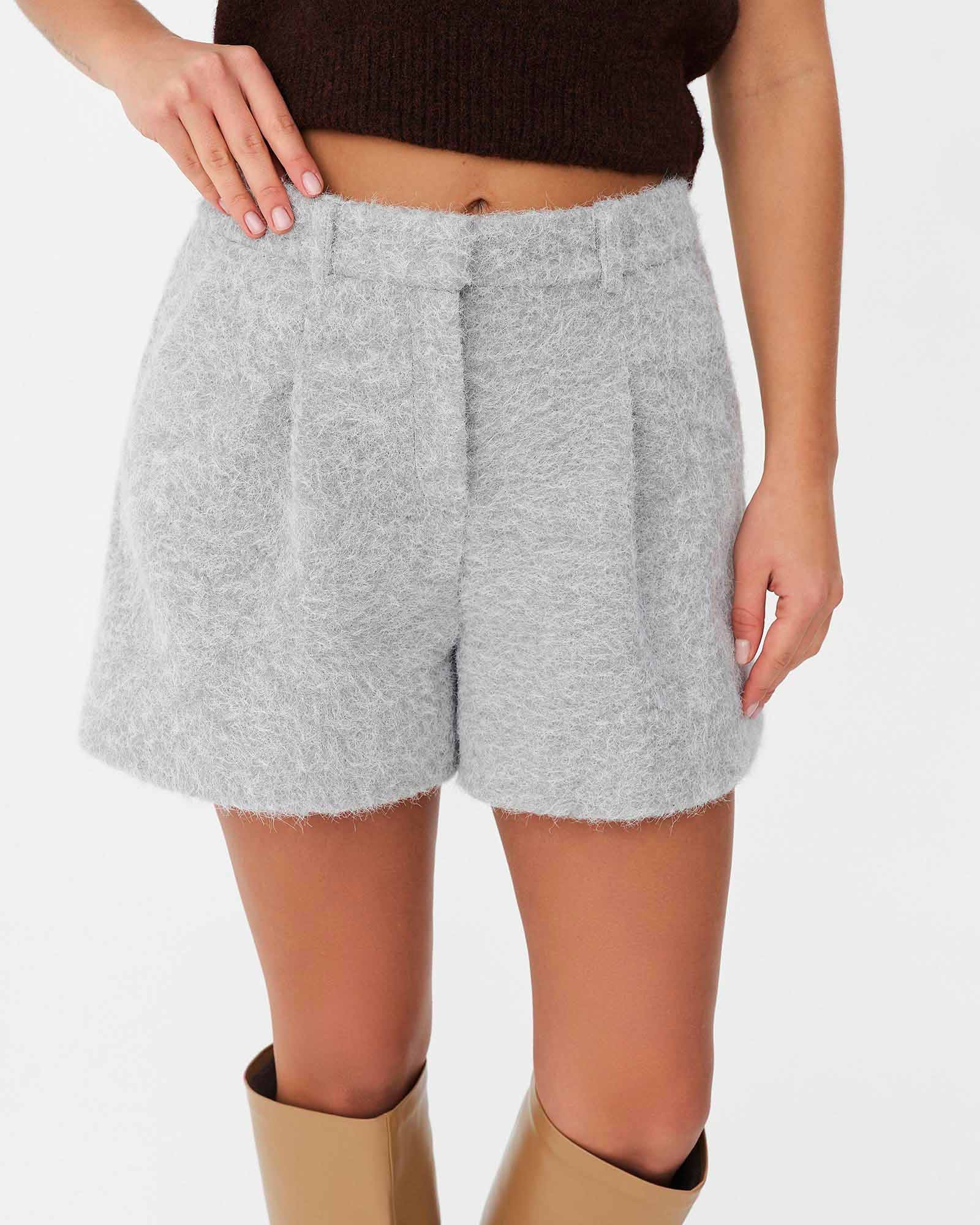 Однотонні текстуровані шорти вільного крою із защипами спереду. Модель з високою посадкою, боковими кишенями та петельками для ременя на поясі....