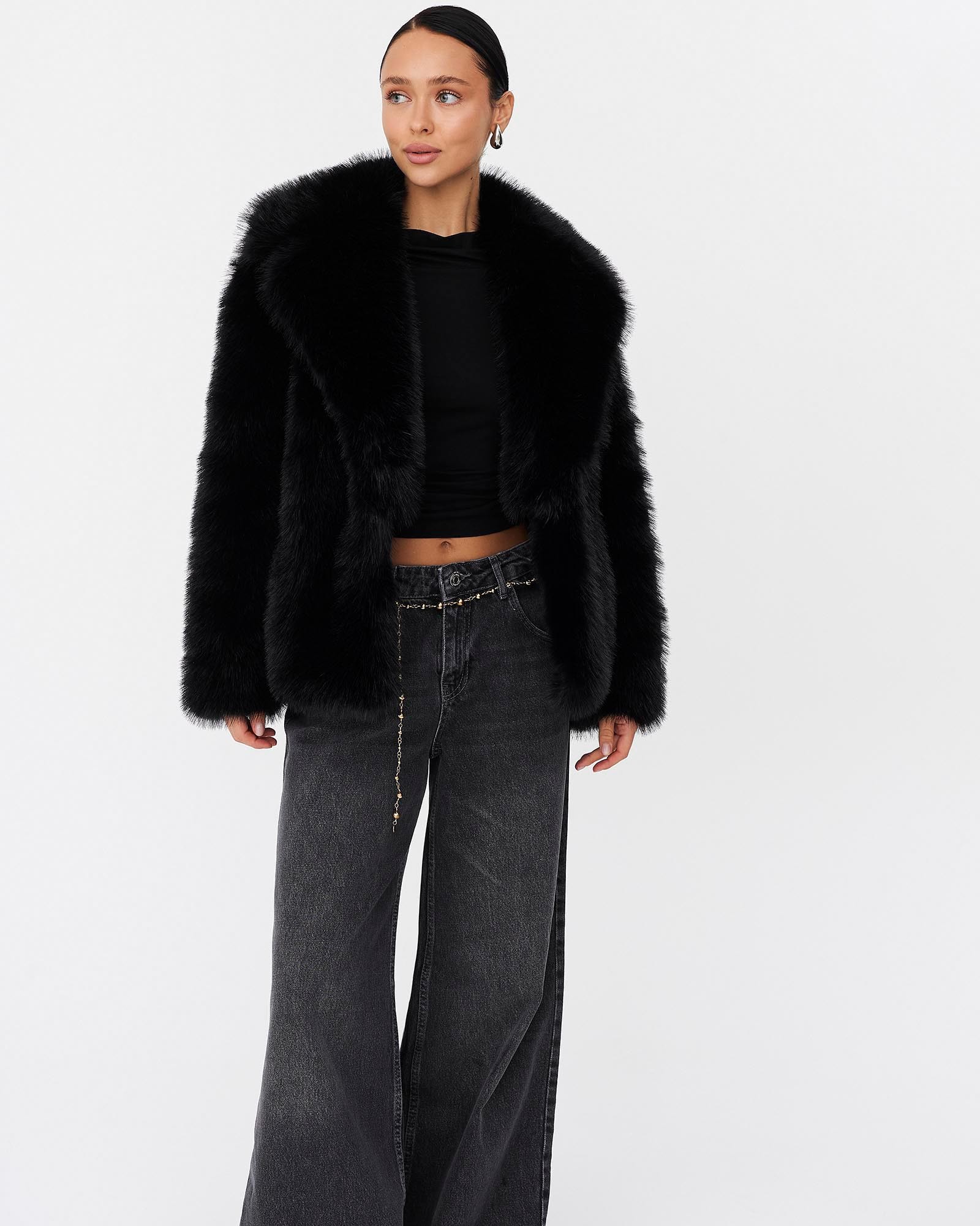 Передзамовлення. Очікувана дата поставки 09.12.2025р. Однотонна шуба прямого крою з відкладним широким коміром, боковими кишенями та довгими...