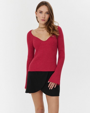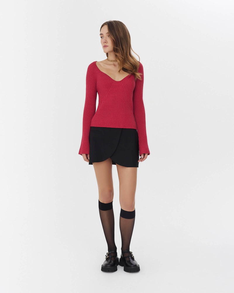 Однотонна джинсова мініспідниця з плісируванням. Модель з високою посадкою, необробленим низом, петельками для ременя на поясі та застібкою на...