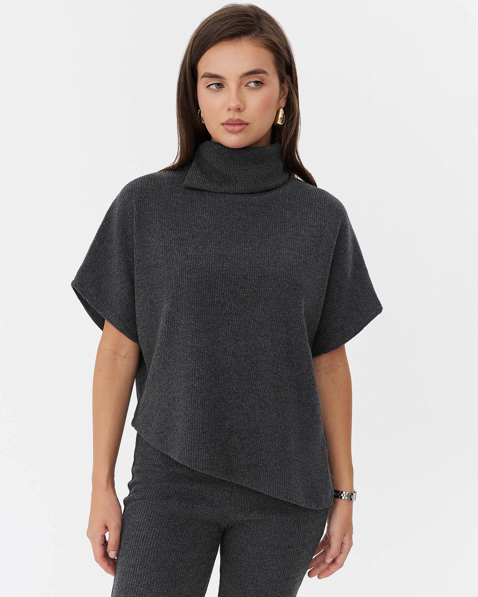 Світшот вільного крою з декоративними швами, що виконані в тон кольору тканини. Модель з горловиною-стійкою, застібкою на блискавку спереду, довгими рукавами, опущеними плечовими швами та боковими кишенями.
